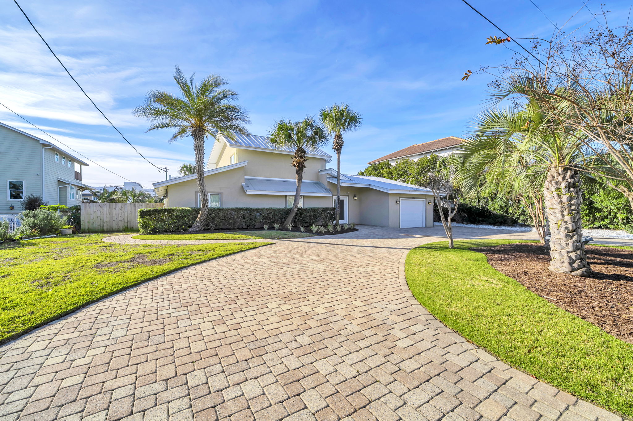Splish Splash is a fabulous 5-bedroom, pool front home in Villages of Crystal Beach, featuring a spacious open floor plan with TWO gorgeous balconies, TWO living rooms, and TWO master suites. Splish Splash is a 3-story, corner home boasting 10-foot ceilings and 8-foot doorways and a fully equipped kitchen with granite countertops, stainless steel appliances, and a dining table plus breakfast bar. There is a queen master bedroom and a queen sleeper sofa on the first floor. A queen bedroom and a king master suite with a full-size futon on the second floor, and a bedroom with a queen bed, and a bedroom with a twin over full bunkbed on the third floor along with a second living space with a queen-sized sleeper sofa, allowing sleep accommodations for up to 16 guests. The 2nd floor master suite also features a private kitchenette/wet bar, a flat screen TV, balcony access, and an ensuite with a corner Jacuzzi tub! Enjoy your refreshments on the two balconies or relax comfortably in one of the two living rooms. This luxurious community is about 900 yds from Crystal Beach and includes a complimentary seasonal trolley service to take you to and from the Gulf!